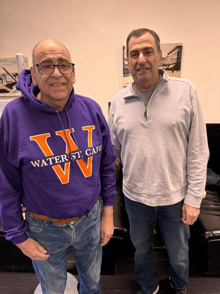 Water St. Cafe greets Joey in new hoodie; he holidays with family.