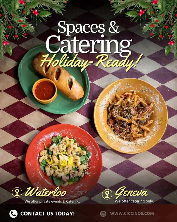 Ciccino's offers holiday event hosting and catering services in Waterloo and Geneva.