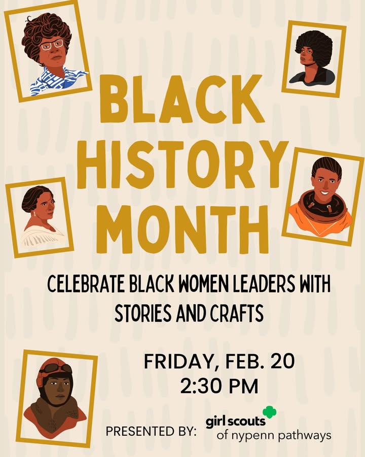 The Geneva Public Library in Geneva, N.Y., will host a Black History Month program highlighting Black women leaders, including Girl Scout leader Josephine Groves Holloway, featuring a Storytime reading from “Little Leaders: Bold Women in Black History” and a hands-on craft activity with all materials provided, presented by the Girl Scouts of NYPENN Pathways, Inc., with registration appreciated at gplny.org for Friday, Feb. 20, at 2:30 p.m.