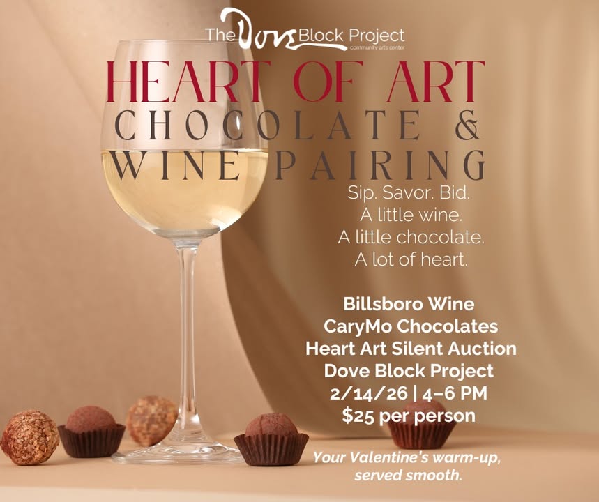 Wine and chocolate pairing event on Feb 14 supports local arts initiatives.