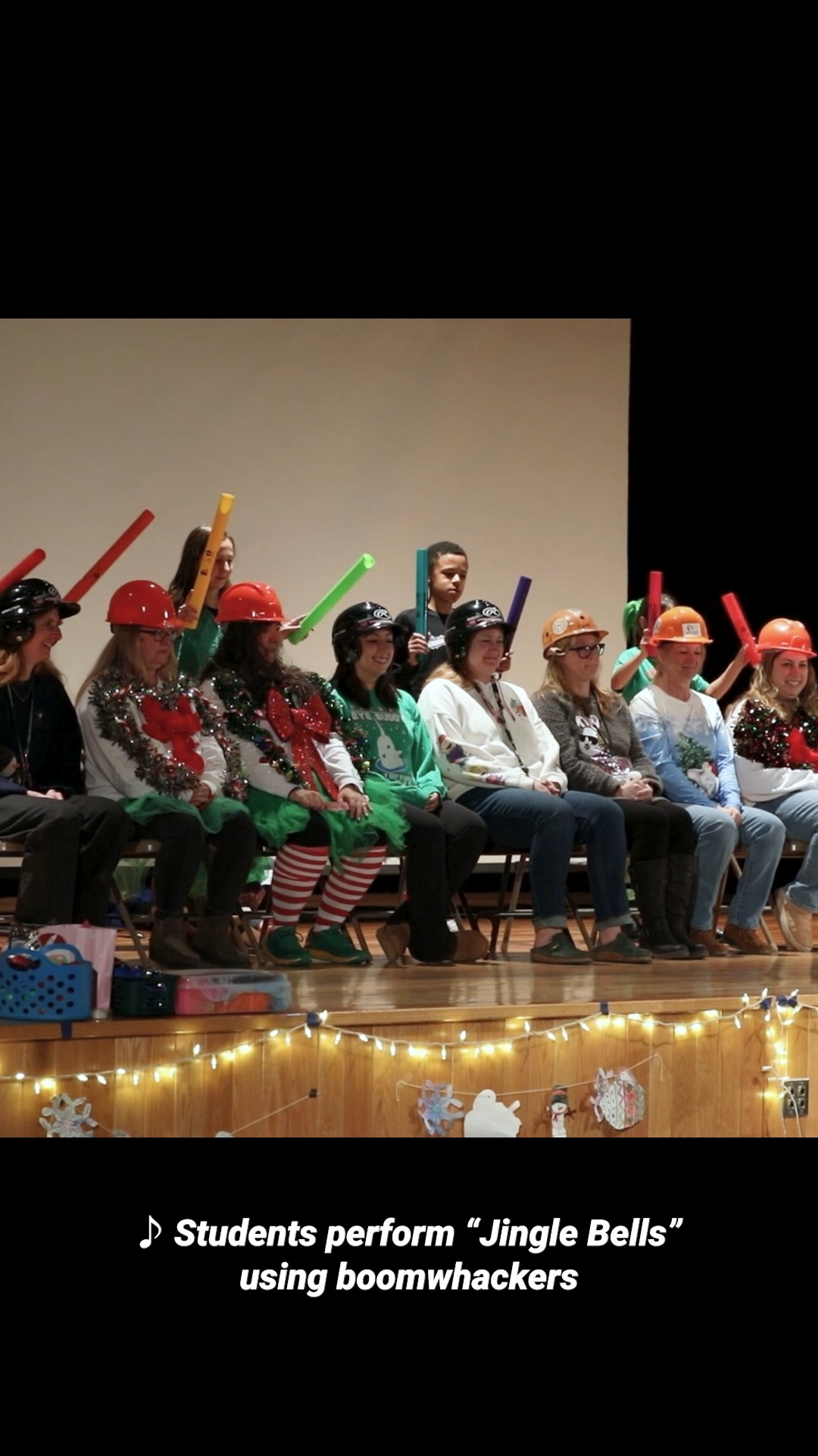 At North Street School in Geneva, New York, teachers and grade 5 students participated in a memorable sing-along event. The performance featured teachers on stage wearing hard hats and playing boomwhackers to "Jingle Bells." Students provided the beat while joining in the musical presentation. The event was part of the school's celebration of music and community.