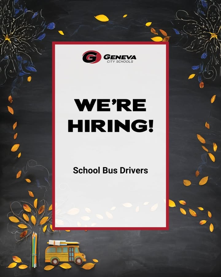 Geneva School District hires bus drivers; find details online at Ontario County's site.