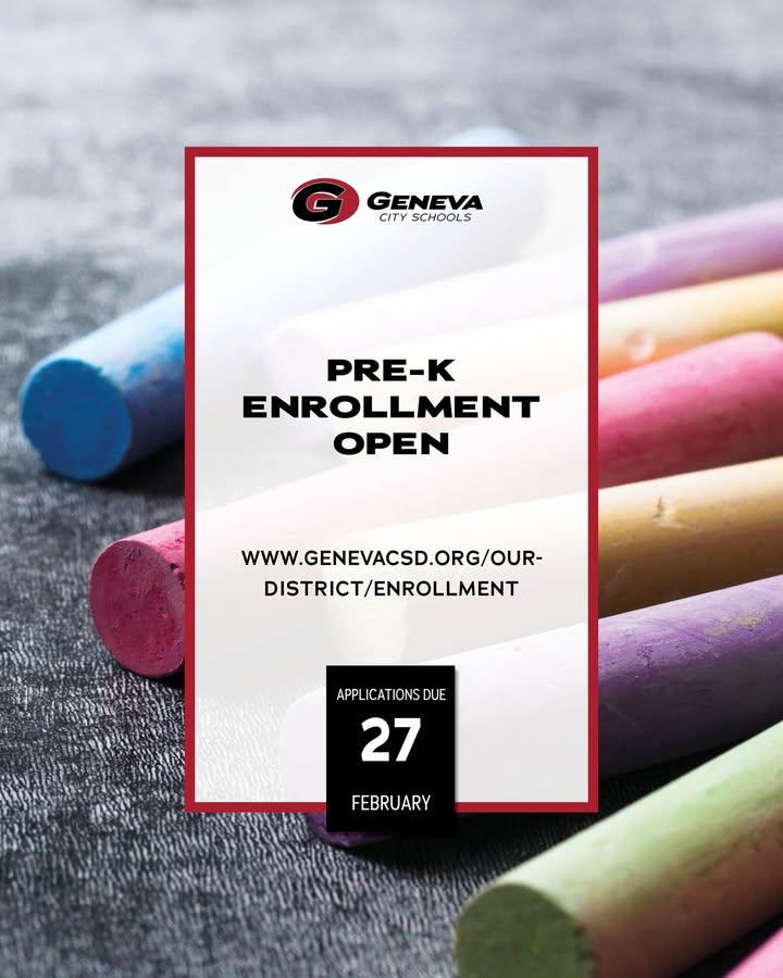 Geneva City Schools announced that preschool applications are now open. Children who are 3 or 4 years old before December 1, 2026, are eligible to apply. The district offers grant-funded UPK and Head Start programs, available in both half-day and full-day formats, although spots are limited.
