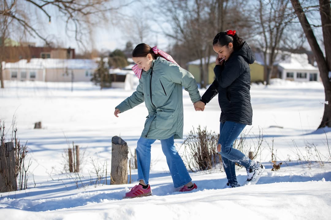 Ms. Connolly led the trek on snowshoes, breaking trail and guiding students as they spotted animal tracks and dens and worked to identify trees in their winter landscape.
